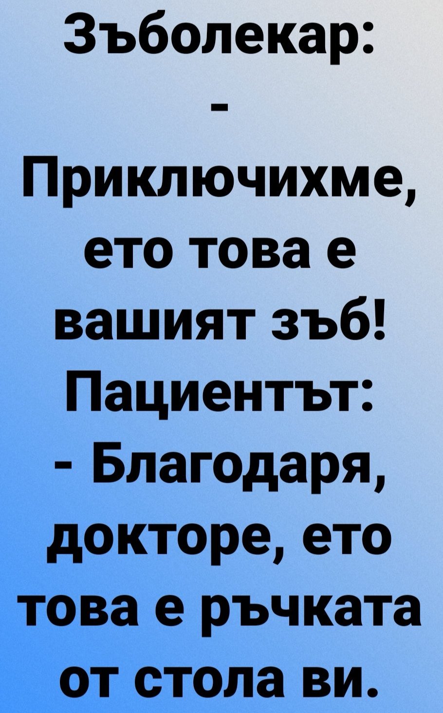 - Ще избием 14 милиона мюсюлмани и един зъболекар - отговаря Буш.