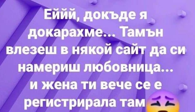 "Да му се не види, аз цяла нощ си мисля, че ме боли зъб, пък то било палецът на крака ми".