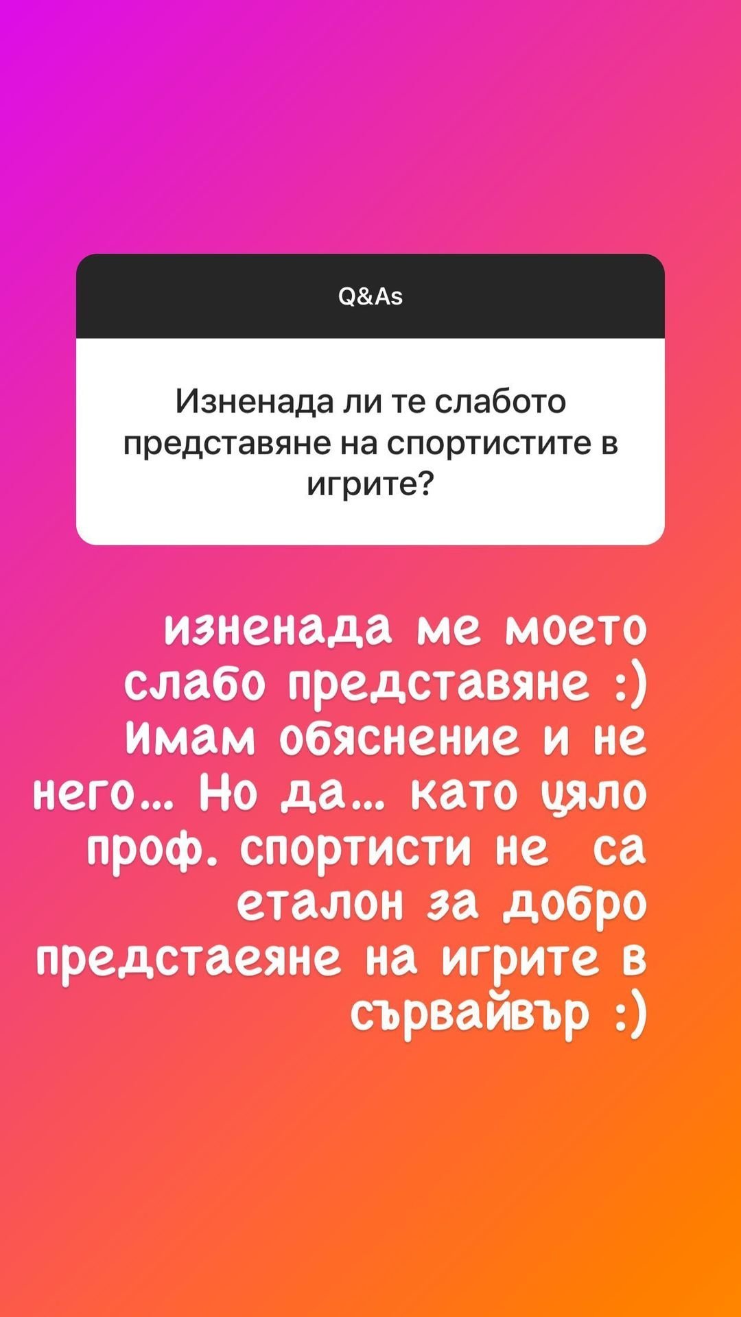 Ето вижте какво споделя Бо в последното си инста стори. Казва, че нейната идея за използване на идола на предишния съвет е била да изгонят Кари, а не Ганка, само че Зоран явно пак е наложил волята си. Е, нормално, защото той беше във владение на идола, но отново удобно, че и тогава не е искал да гони Кари.