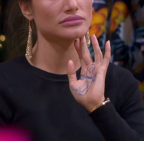 Скандала, е заради някакви карти на Александра и нарисуван символ на ръката й.