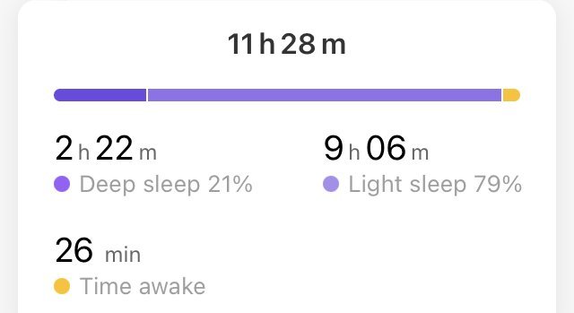 Поне дълбокият сън процентно ми е добре 34%, че съм имала и по час и 1/2 дълбок сън - да речем 20%. На вас колко ви е.