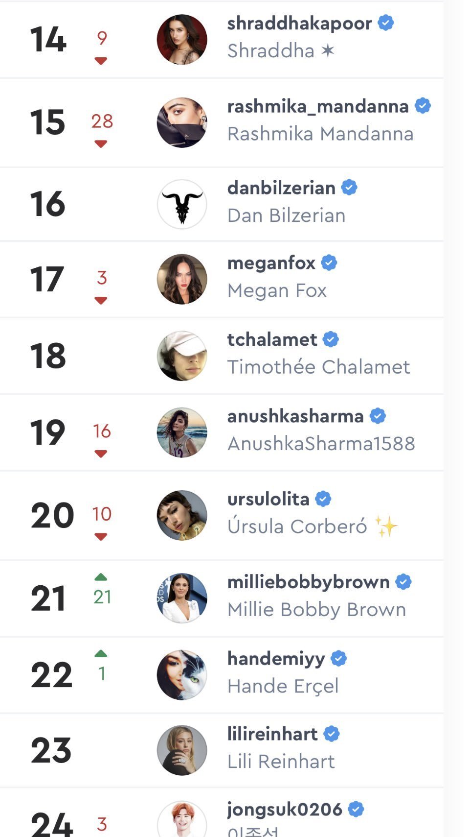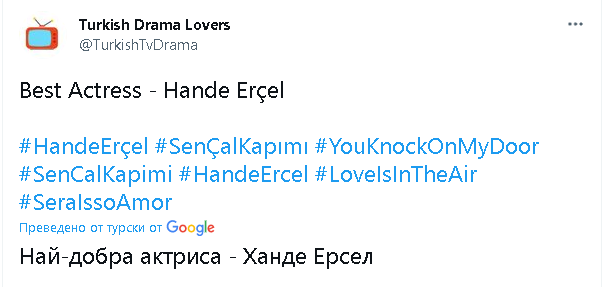 "Ханде Ерчел е класирана на 22-ро място в списъка с най-качествени акаунти в Instagram в категорията Кино/Актьори."