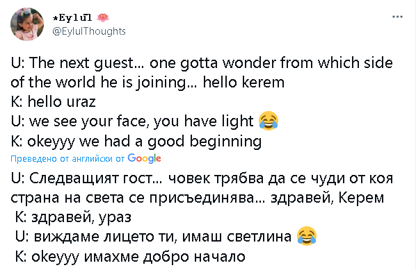 Съвсем за кратко се включи Керем, ето какво преведоха от разговора в туитър