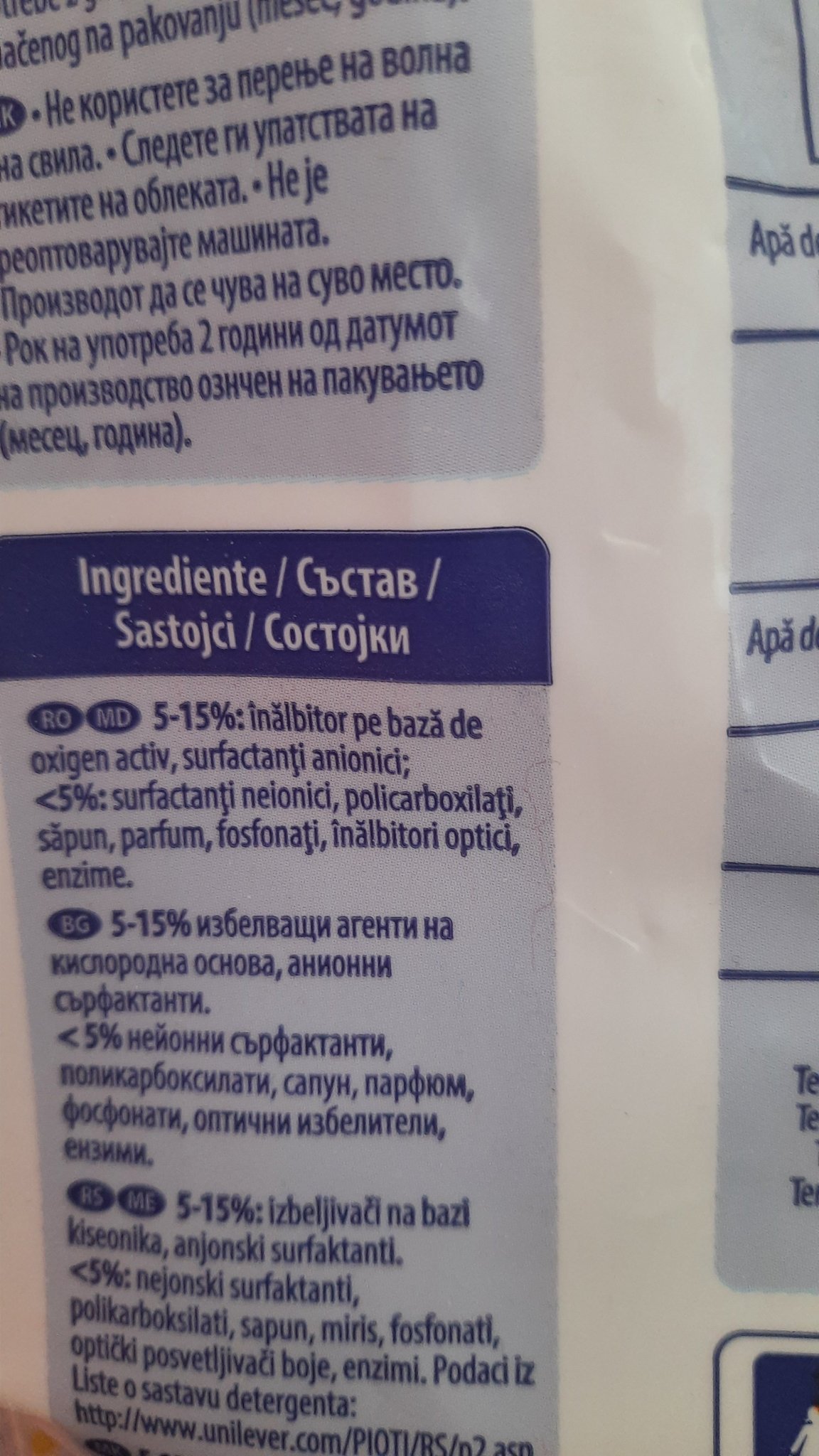 Този, който хвалих в предишната тема е в друга опаковка - лилава за цветно пране и зелена за бяло. Освен това е в пликове, има две разфасовки.