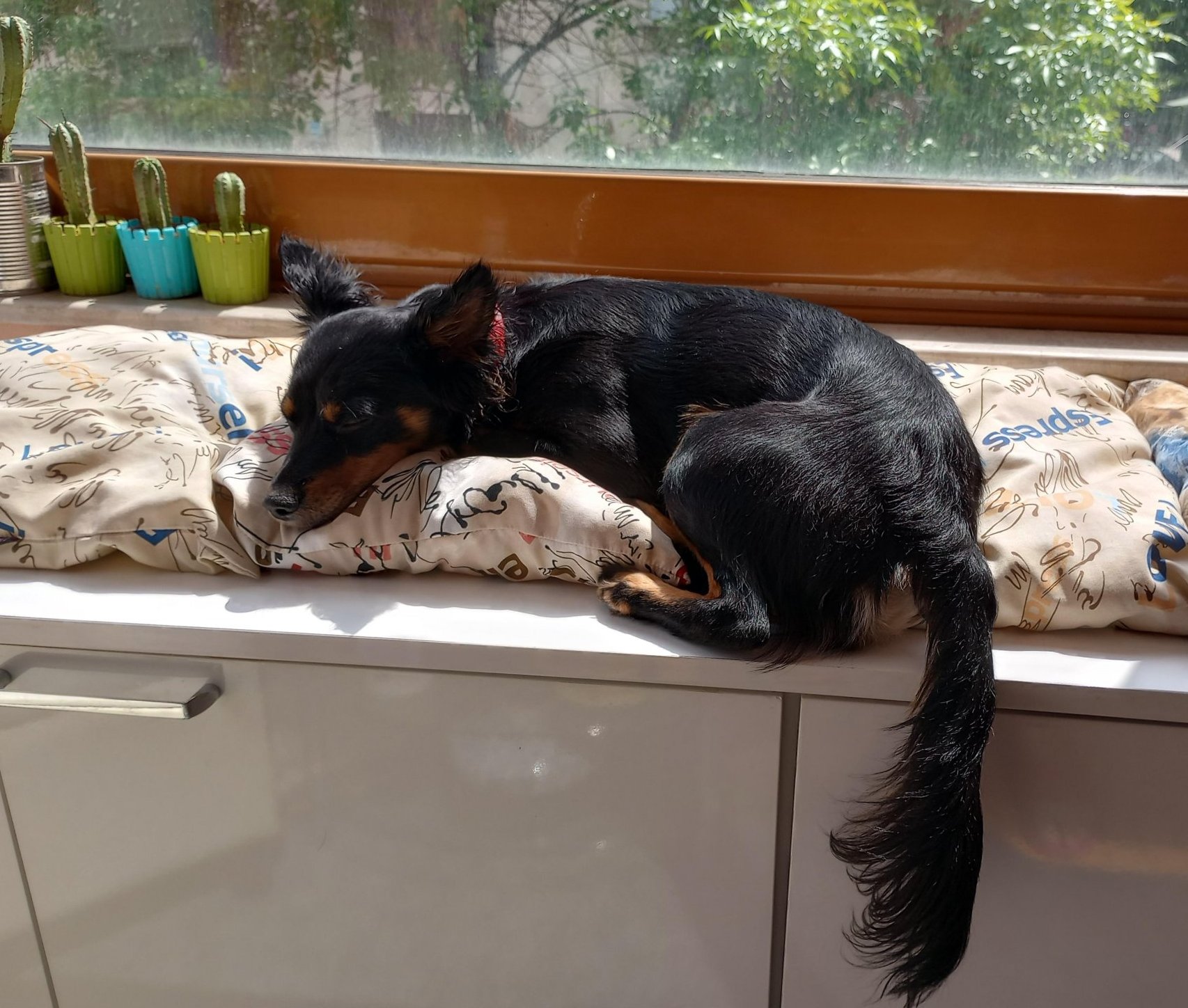 Нашият любимец направо се е размазал на слънчице. Не съм виждала по-блажена физиономия/муцуна/. Blush