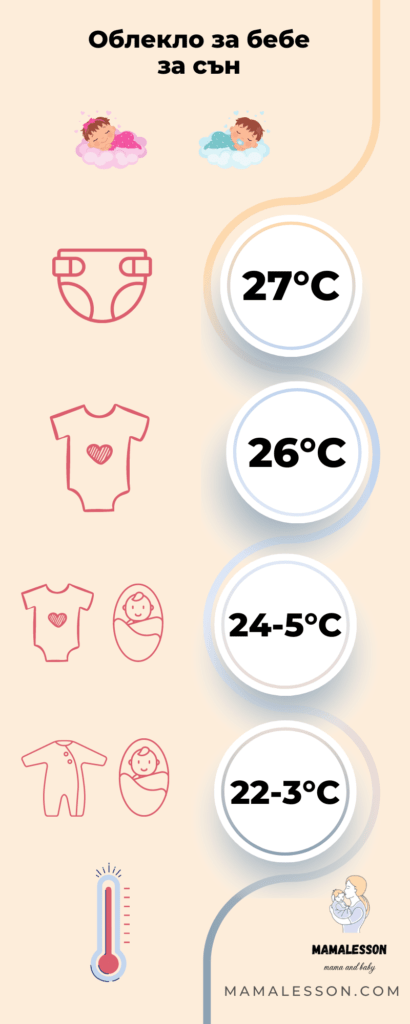 Когато обличате бебето за излизане, вземете предвид температурата. Облечете го според сезона, като добавите жилетка или одеяло според градусите навън. Уверете се, че е леко облечено, за да избегнете прегряване и да предотвратите появата на пъпки по кожата. Наблюдавайте реакциите на бебето и коригирайте облеклото му според нуждите.