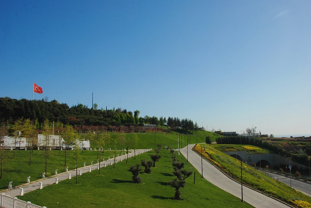 А това е парка зад джамията, през който би трябвало да се стига до хълма. Ние повървяхме малко, поседнахме на пейка и се върнахме към спирката.