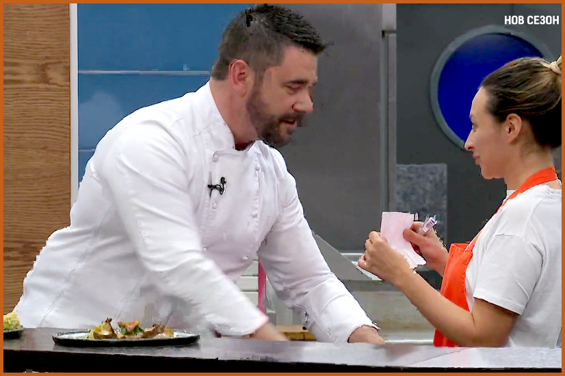 Обърнете внимание, че винаги приготвят по две дегустационни порции. Тоест една се опитва предварително, а с другата се презентира официално. Така, че сто процента съм убеден, че освен Ангелов и някой друг описва, после се пишат репликите на Ангелов и след това правят официален запис. Забелязахте ли, че снощи показаха кадри правени именно между готвенето и официалния запис, когато Николай и Валентина се разправяха за неговото поведение по време на битката по коридорите. Това означава, че те вече са сготвили и изчакват в общежитието да ги викнат за официалния запис на презентацията.