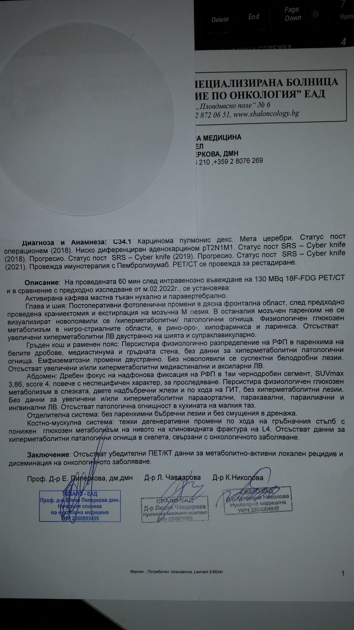 и много се радвам. Професор Пиперкова нищо не пише за черен дроб в заключение. Значи си здрав! За мен е така. Нали? Напиши моля, както за обикновени хора та да се порадваме.
