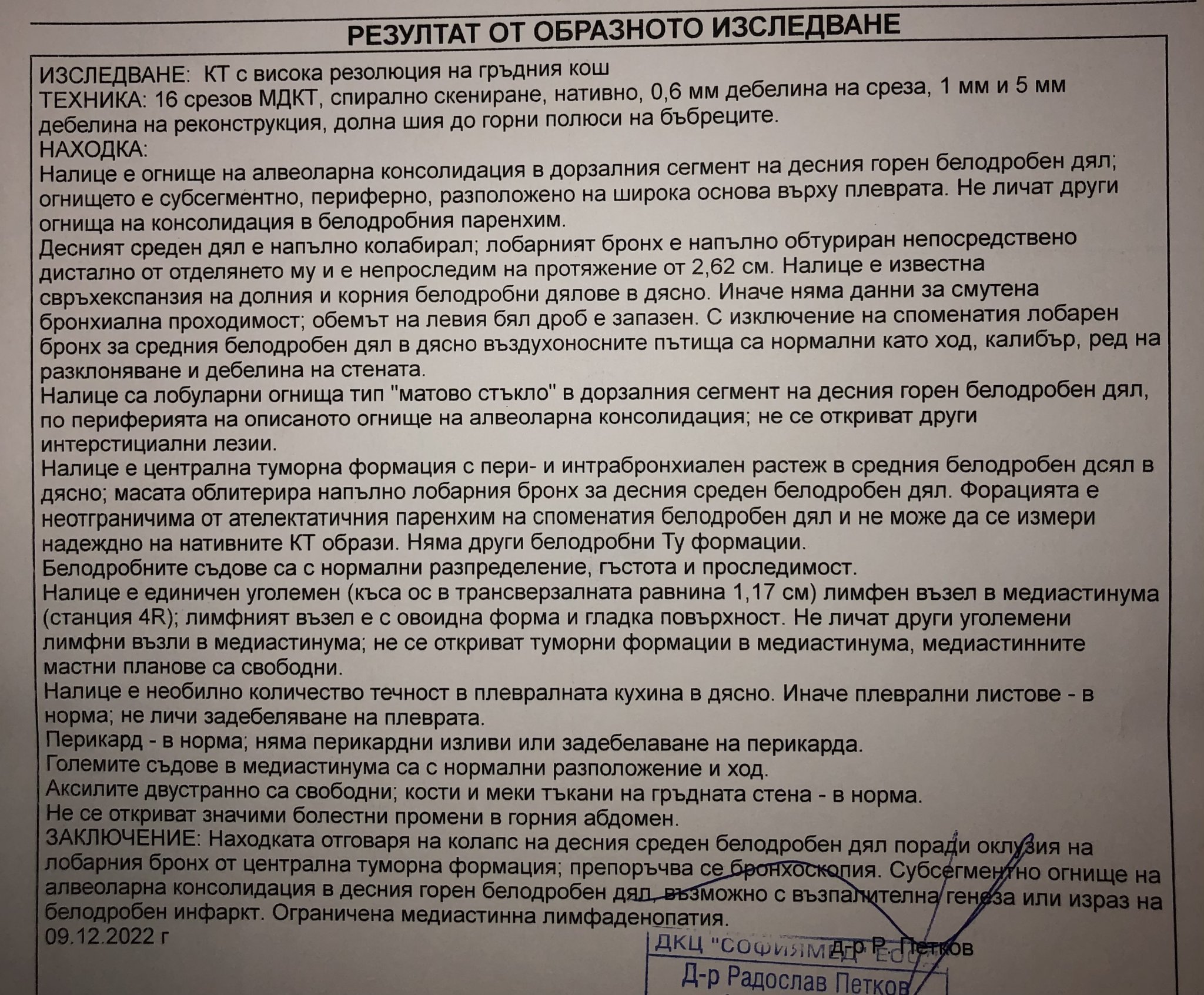 Може да качите разчитането на скенера,като преди това заличите личните данни.Може локацията да не позволява взимане на материал с бронхоскопия ,или тънкоиглена аспирационна биопсия -според локацията ,и
