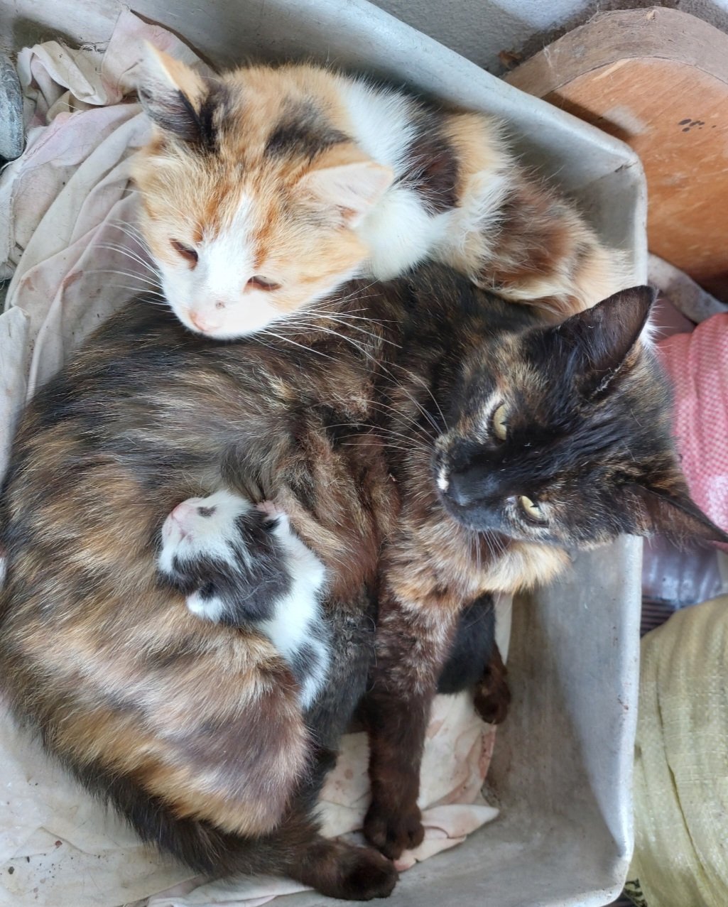 Бях на село днес. Бабините котки имат бебета. Не е ясно кое коте на коя мама е. Едната реши, че ще мести малчуганите и тръгва, другата ги връща. Накрая ги преместиха, обаче забравиха едното. То милото се скъса да плаче, та се наложи да го занеса аз Grinning