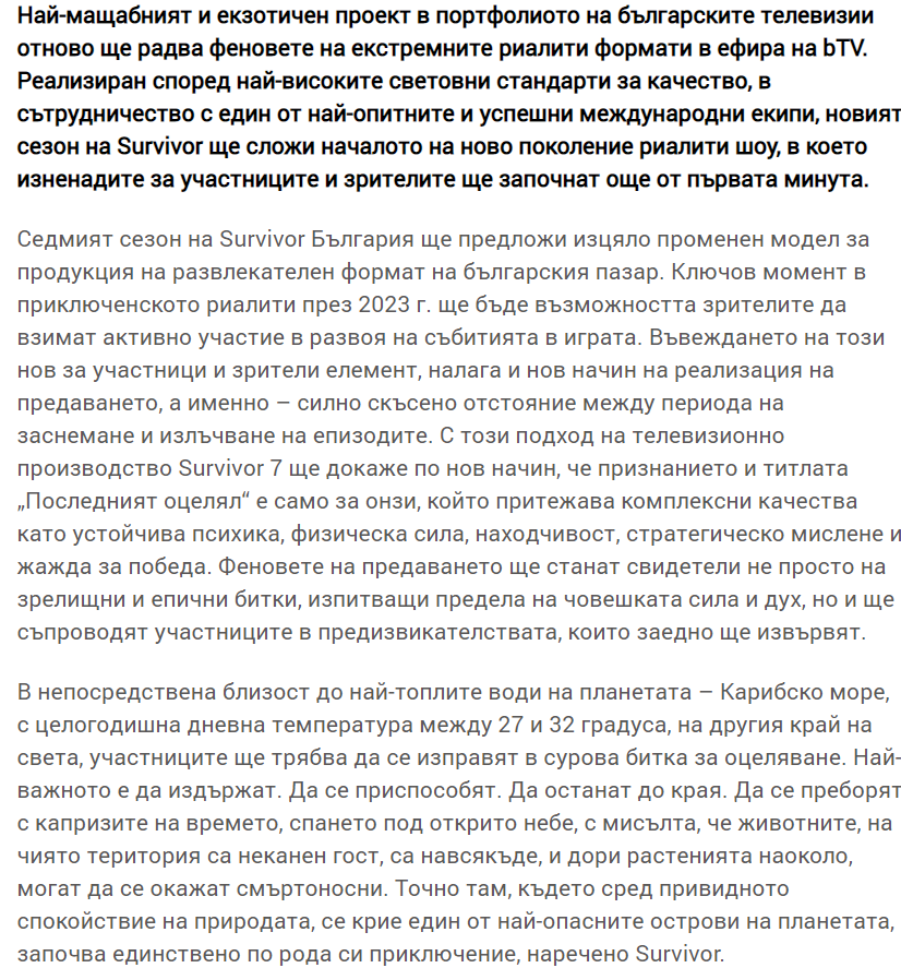 🔥 #Survivor 7 ще изненада с мащабно и различно изживяване в новия сезон на най-екстремното риалити предаване.