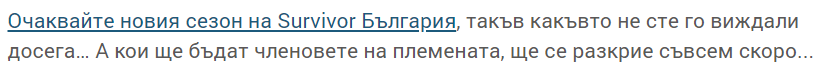 Та не е зле ако няма какво да се пише по Сървайвър, по-добре да не се пише...