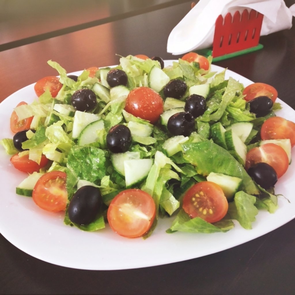 Айсберг, чери, краставица, зелени маслини и риба тон