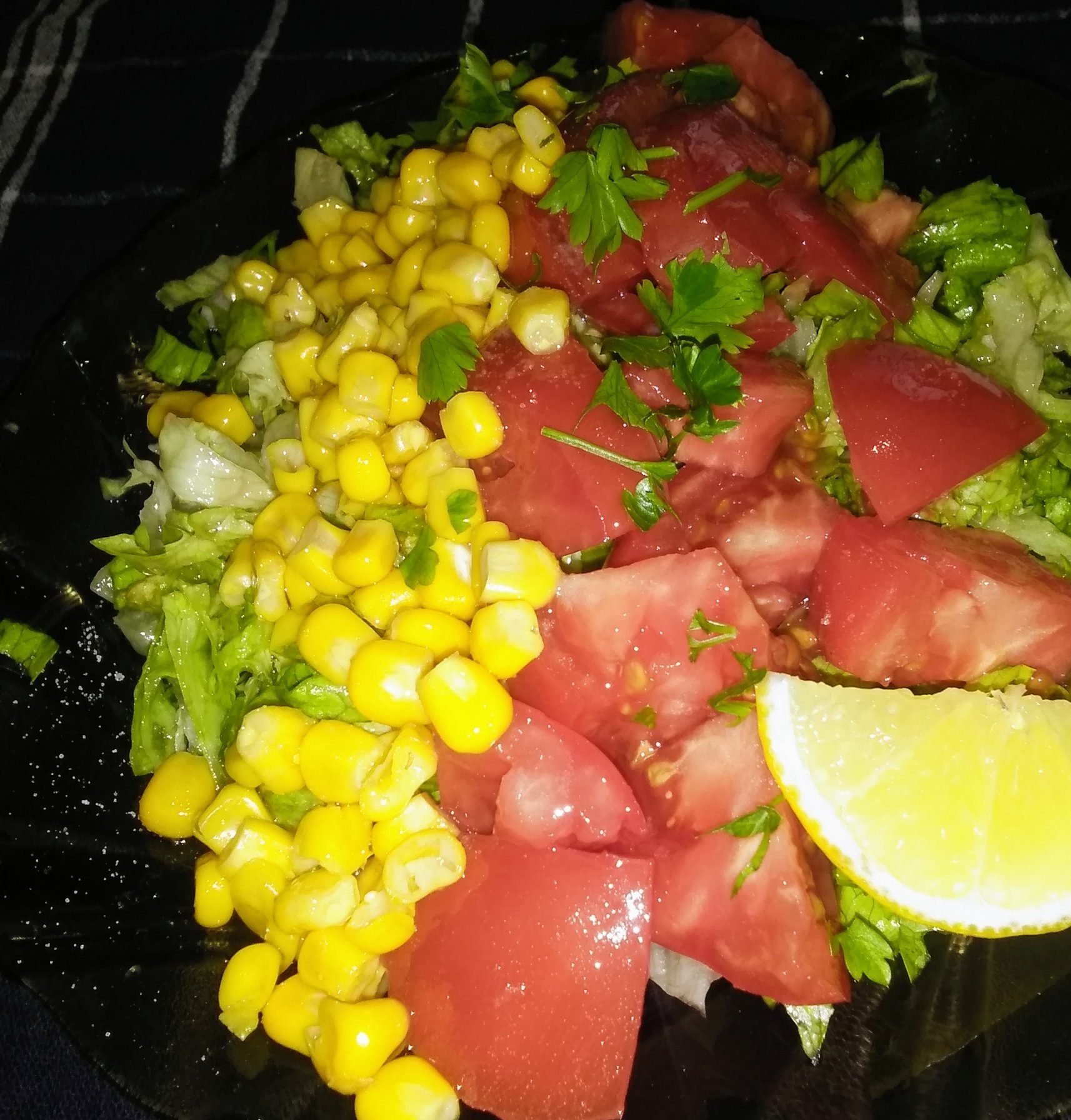 Краставици, домати, царевица, лук, лимон, риба тон и маслини