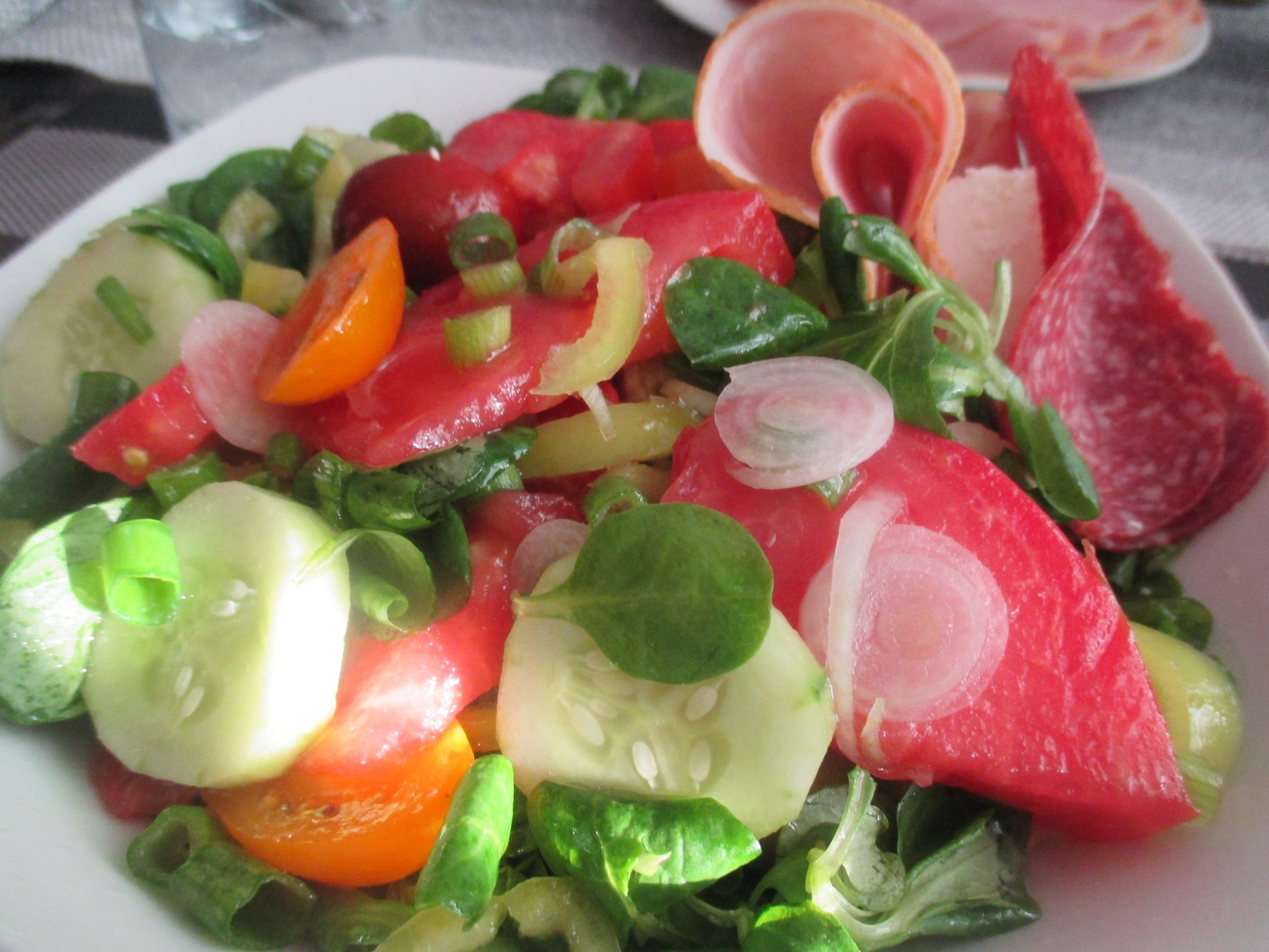 Валериана, не знаех, че така и казват на градинската салата. Много я харесвам. Моят вариант е - с много малко лук, печени слънчогледови семки и крутони.