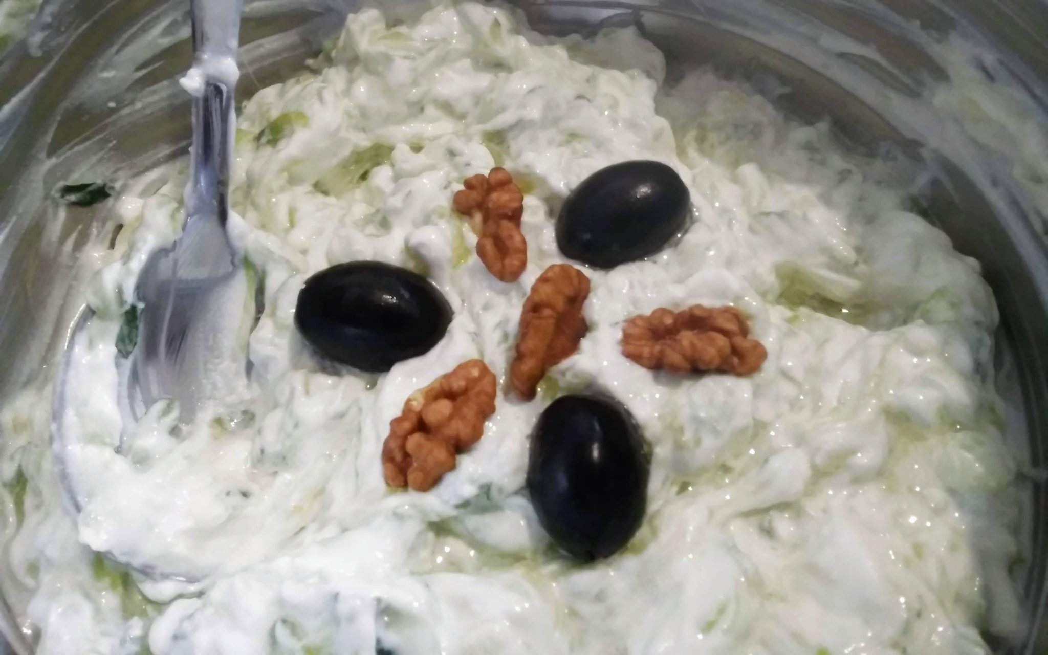 Млечна с прясна краставица, чесън,орехи и маслини