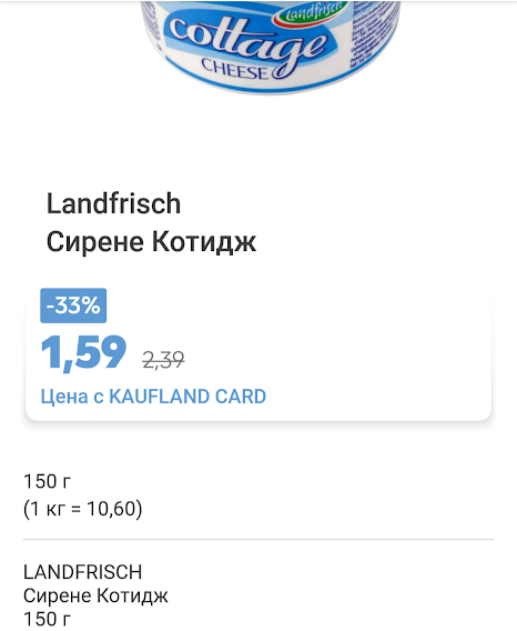 Знам, че има котидж на промоция, взех от него. Но кутийката от 200 гр, сравнена с Кауфланд е доста по- скъпа тази седмица