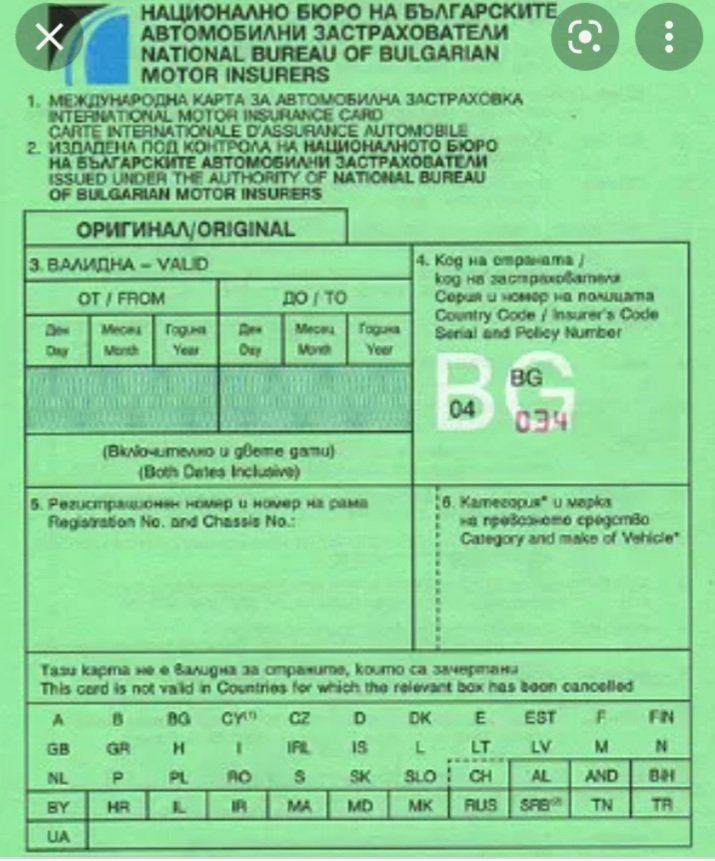 Трябва ви зелена карта към застраховката, на която в списъка с държавите да присъства Турция както е показано по-долу на снимката: