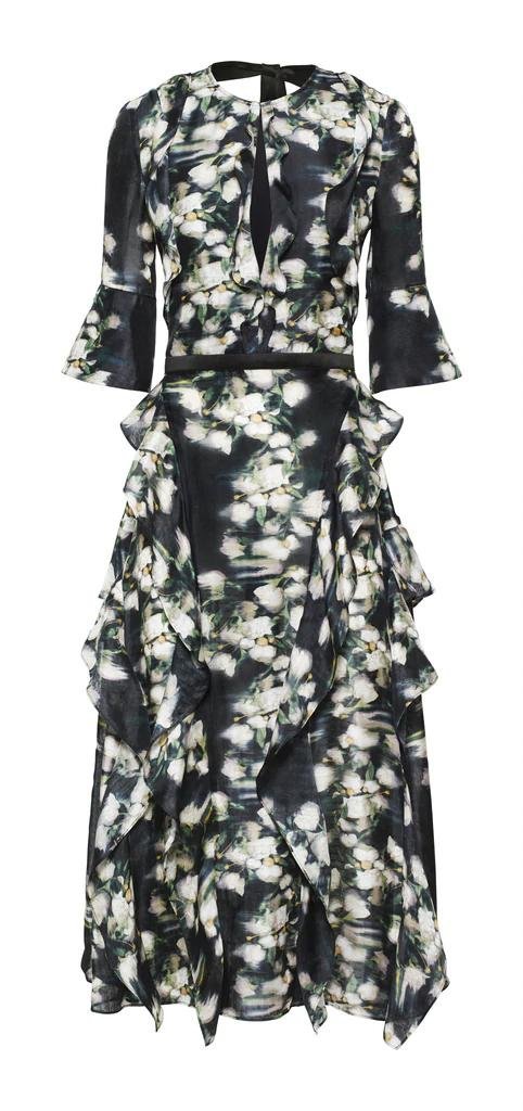 Другата не мога да я намеря онлайн, защото както вече съм казвала, дрехите ми са сякаш всички преди хиляда години купувани и ги няма. Свободна рокля с коланче по средата, надолу е плисирана, дължина над коляното. Има пръски с други цветове. Снимала съм ви материята.