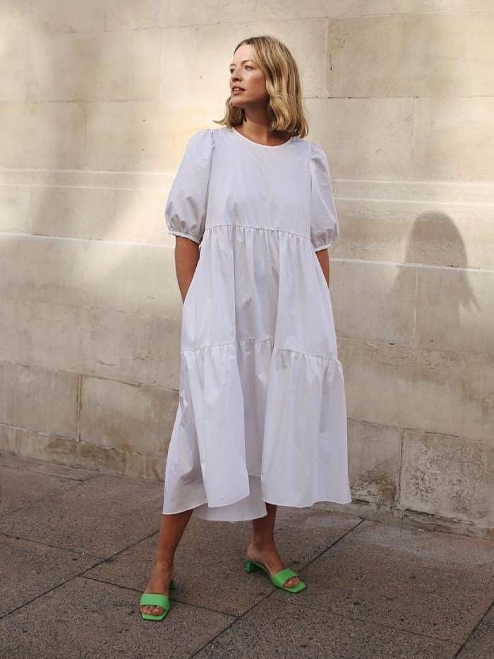 Рокли А-силует с ръкав. Прави панталони, не слим и скини. Свободни, но не широки блузки. Аз примерно, без да съм била скоро бременна, съм 160 висока и 65 кг, в общи линии доста пухкавка и нося подобни рокли с голям кеф:
