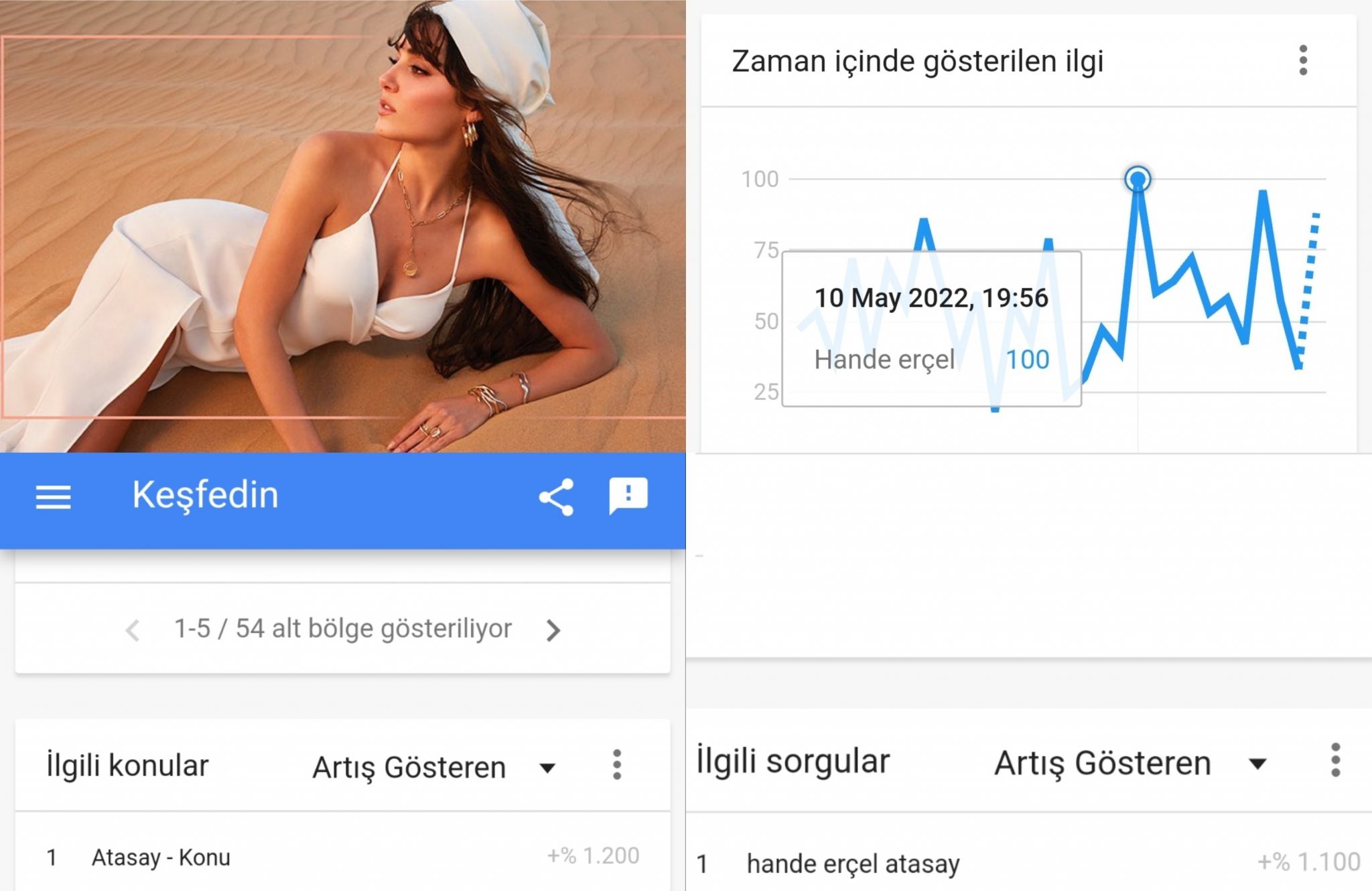 "С пускането на рекламата за Capsule Collection, името на Ханде Ерчел направи бързо възход в Google Trends и достигна върха със 100% търсения. Най-търсените теми бяха Atasay / Hande Erçel Atasay."