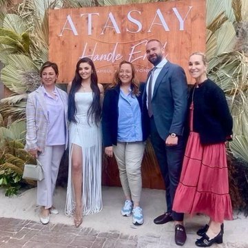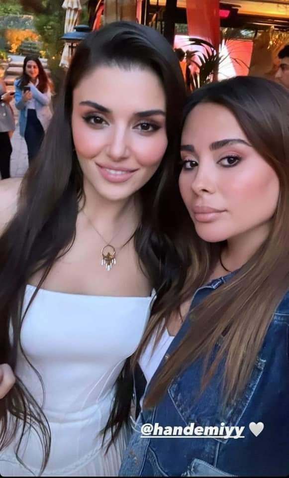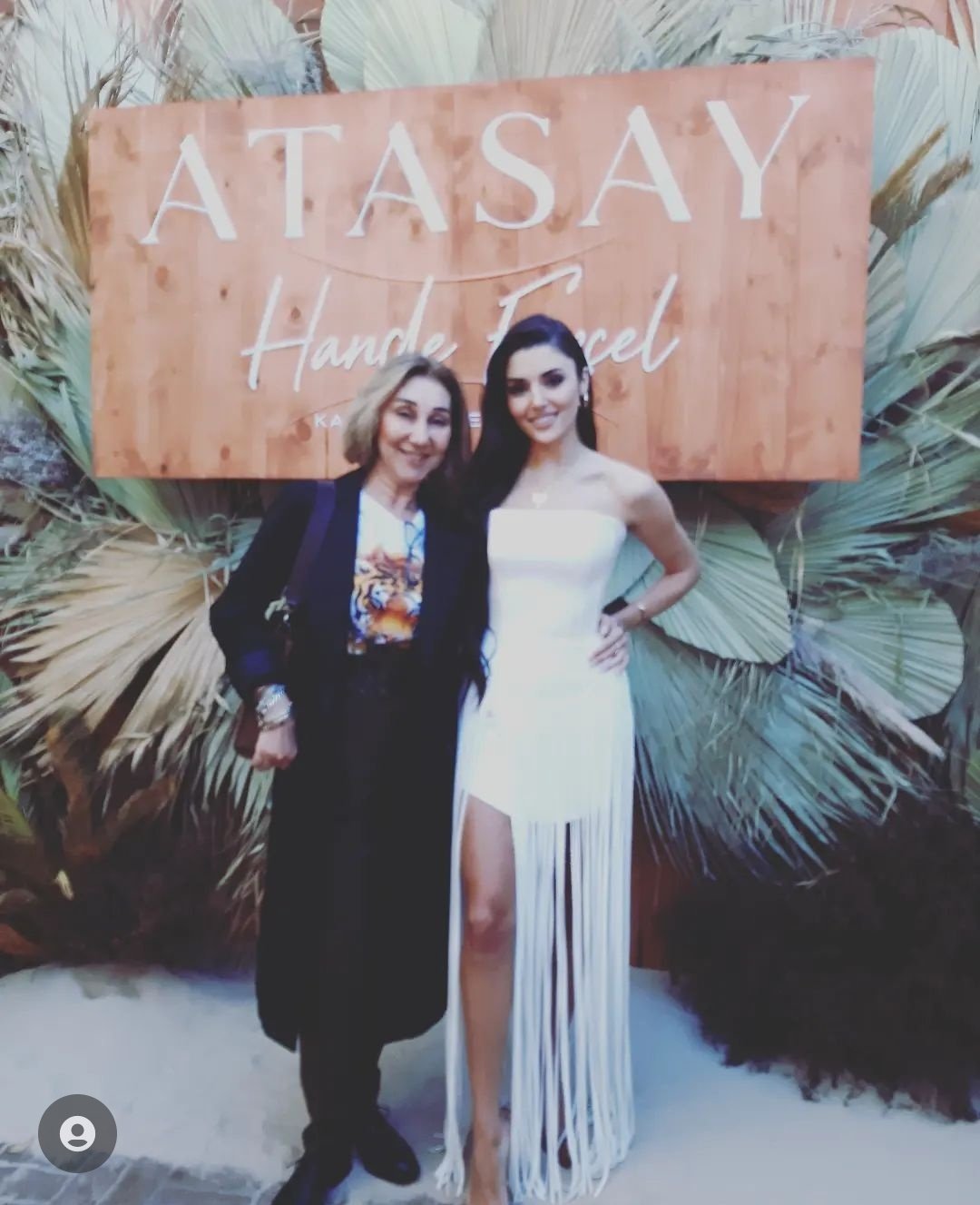 Ханде със сестра си Гамзе на откриването на новата колекция Atasay.