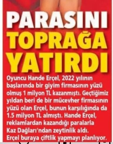 Днес се появи статия за Ханде, че смятала да инвестира в земя. Планирала да построи ферма в района на планината Карс. 🌻