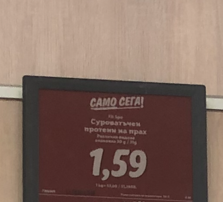 Редовната цена навсякъде е 2.49. В Лидл все още има протеин намален на 1.59 (миналата седмица беше в брошурата 16-22.05).