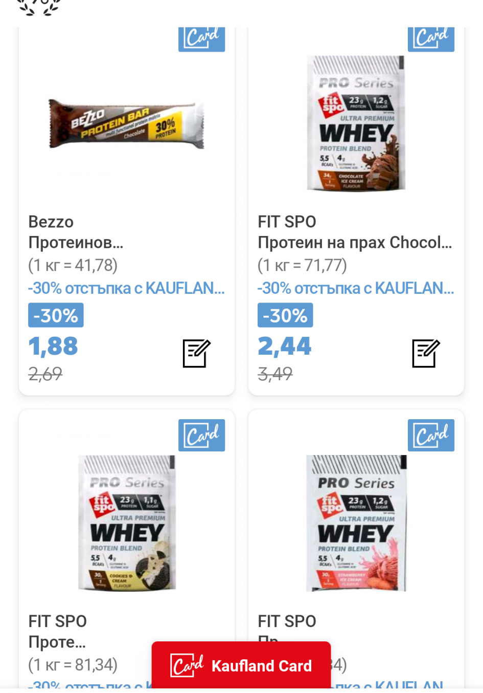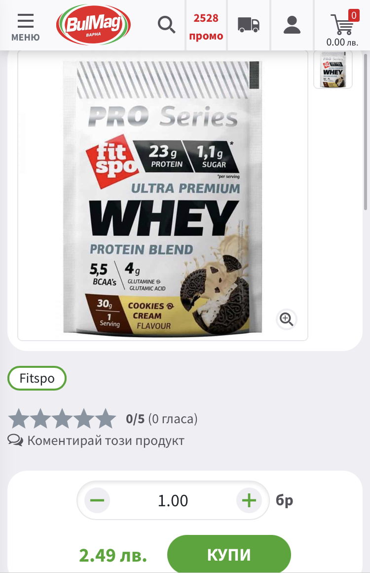 В нашия не съм забелязала да има от протеина на прах, но барчетата са много хубави. Има едно с бисквити, много ми харесва, може да си взема.