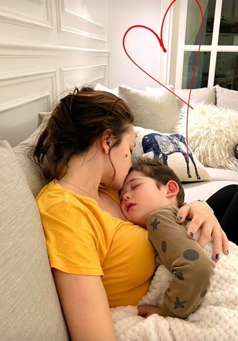А ФЕ ни е изпратила прекрасна снимка с Каран. Кой знае как ревнува от бебето и се е гушнал при мама.