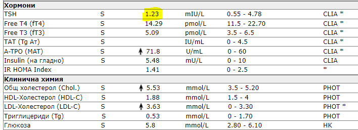 Тук обаче не съм изследвала fT4 и fT3: