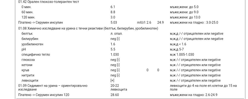 Елора, здрасти, направих го отново, защото февруари кръвната захар на 120 минута беше 13 и  трябваше да се види дали имам диабет. Аз преди да направя натоварването февруари се хранех режимно, а сега разширих гръга на храната, като включих ориз, картофи, спагети, но не в големи количества, а само като гарнитура. Защото прочетох че преди натоварването трябва да се приемат над колко грама въглехидрати не помня, та сега виждам, че има раздвижване. Инсулина нулева мин е 5,а 120 - 28. Да февруари е 22,но нулева ми е 7. Имам само два инсулина, защото аз си ги пуснах на моя глава, докторката каза само кръвна захар, защото през февруари инсулина е подобрен и няма нужда сега, но аз реших така и така ще ми взимат кръв, поне да видя на 120 мин. как върви, защото това било по важно, дори и от на гладно, за да се види как се усвоява захарта. Иначе тогава през февруари имах някакъв вирус, не си правех тест, но бях контактна с омикрон, имах доста симптоми, освен това няква бактерия имах, урината не ми беше добре, и сега пак урината не ми е чиста. Не пия вода много в последно време, което ще го оправя. Много благодаря на всички, от вас се информирам повече, отколкото от докторите. А за хапчето, незнам, ще реша, но много се чудя какво да правя.