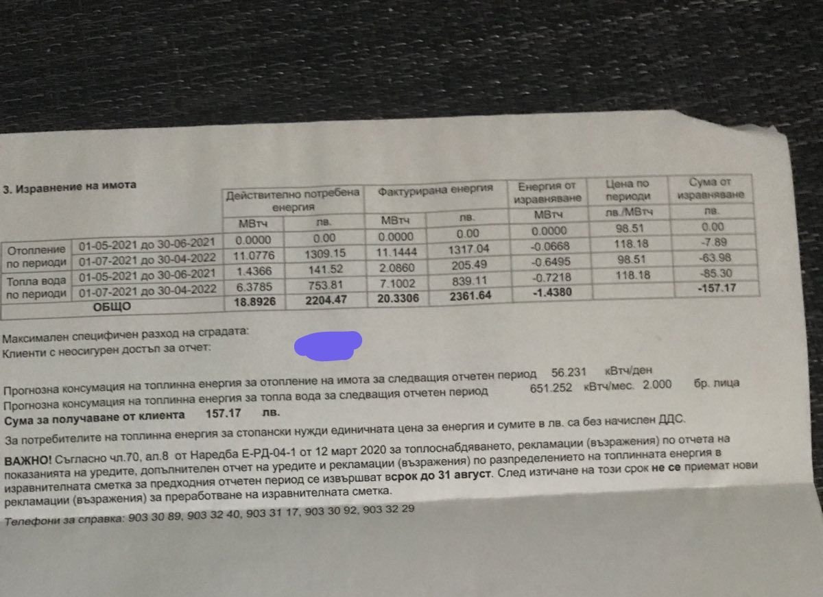В изравнителната сметка на техем имам да взимам 340, а общата фактура на топлофикация пише 170… във входа почина един самотен дядо, плюс има няколко празни апартамента. Дали не са преразпределили… бая тлъсто са ме натоварили… този сезон ползвах наполовина по-малко…