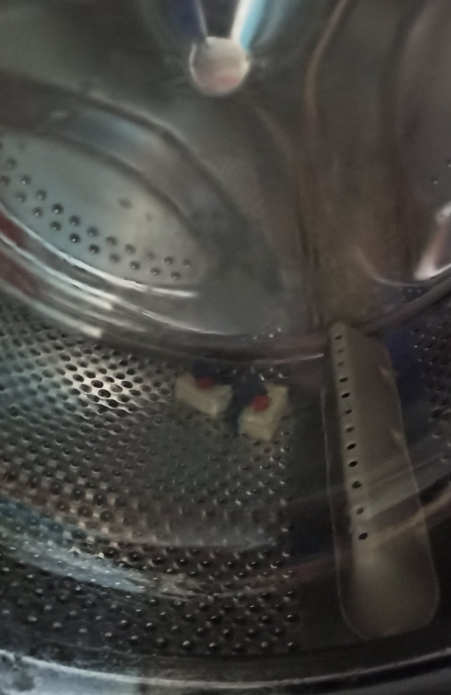 За тези, които предстои да перете дрешките за бебето имам един трик за почистване на пералнята преди това. Хвърляте 2 таблетки за съдомиялна в барабана и пускате програма с 90°С. Аз всеки път се изненадвам как изглежда водата.