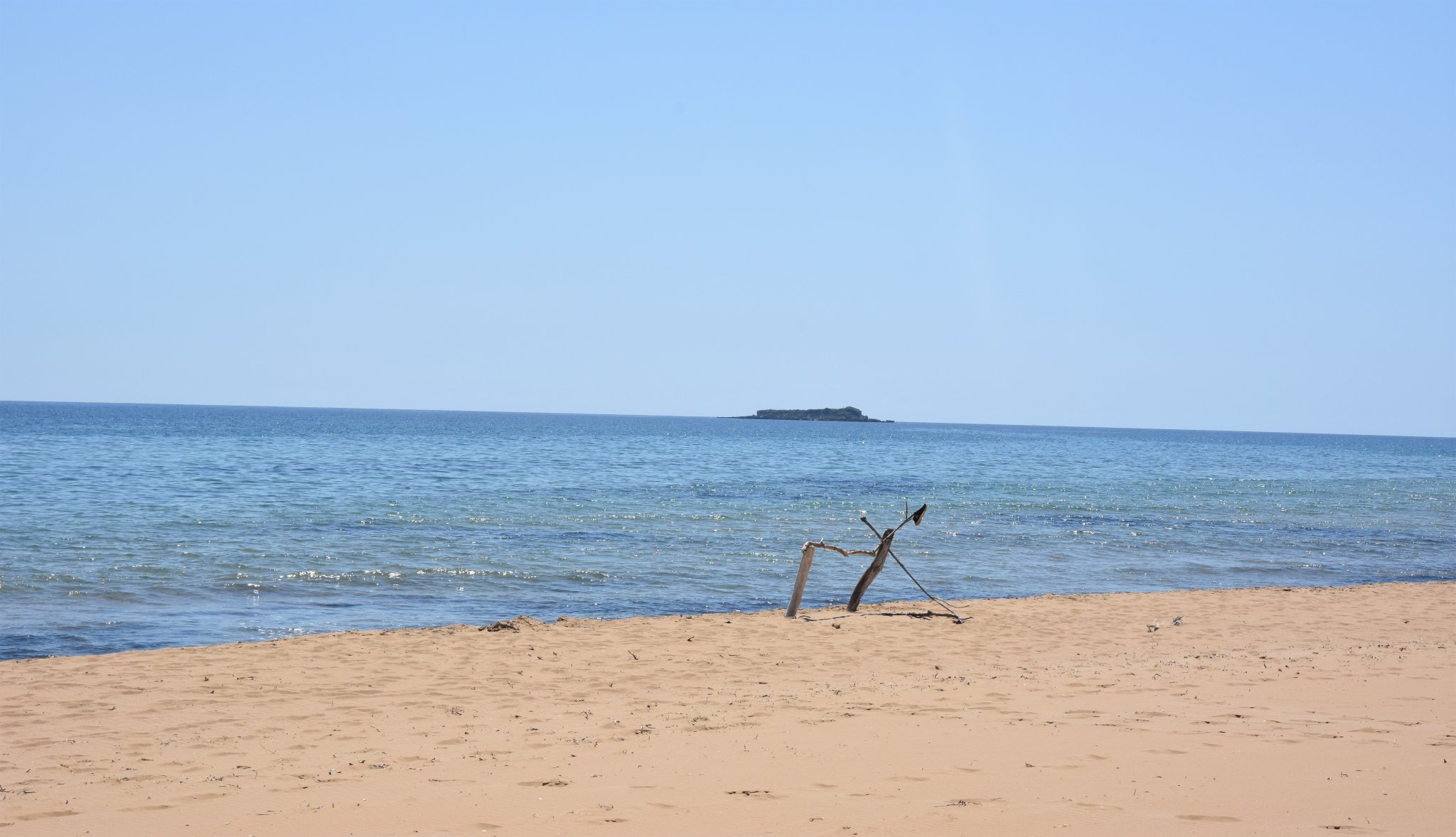 Eто така изглежда най-широкият и "хубав" участък, при бийч бар Вергос. Чадърите са два реда, толкова е широчината на ивицата.