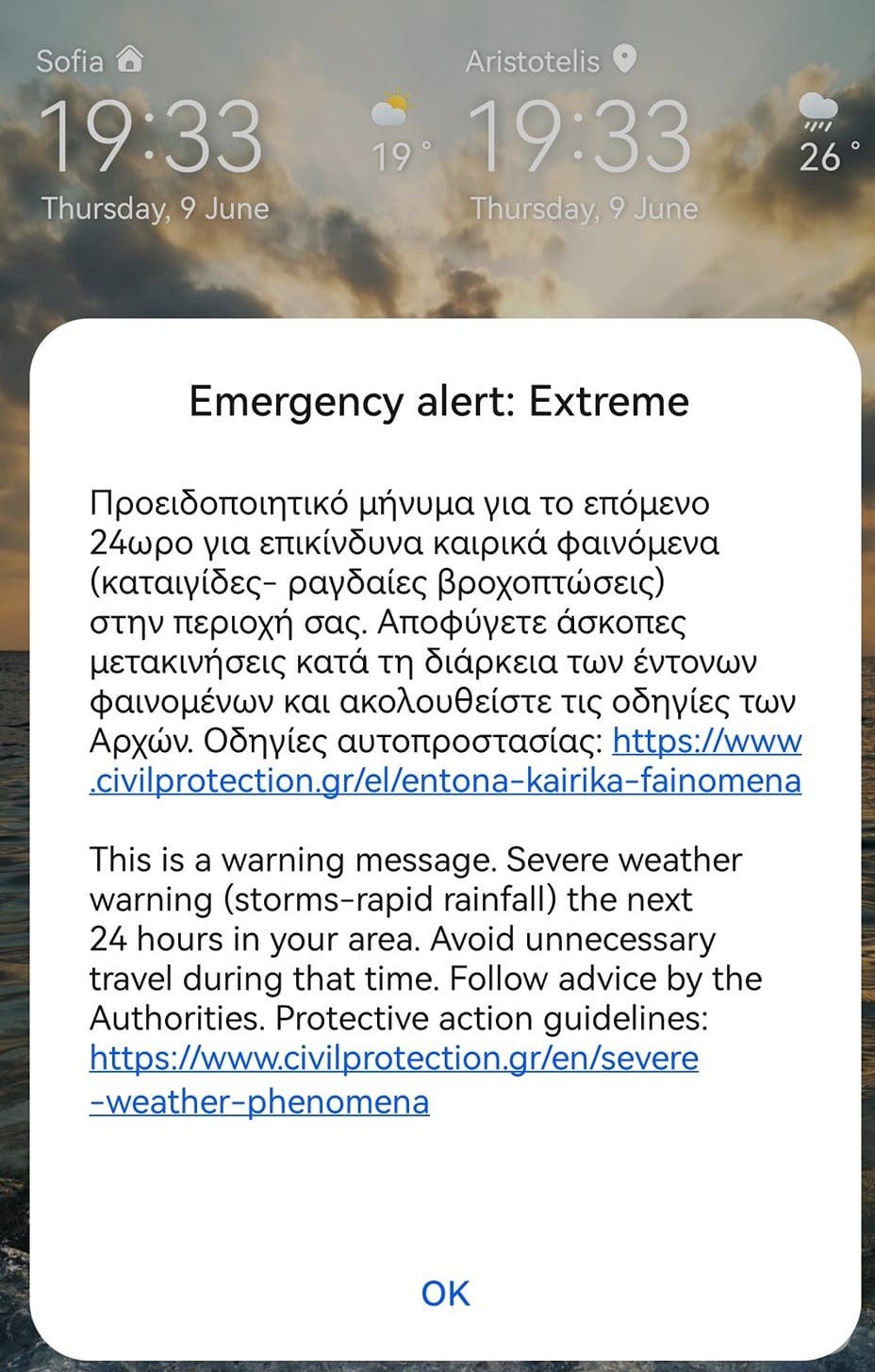 Който е в Северна Гърция, вече е получил това съобщение от Гражданска защита, но ако някой случайно пътува утре, да се пази.