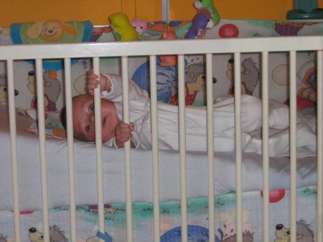 Ето 2 снимчици на моя дзвер как се мъчи да се надига от кошарата: