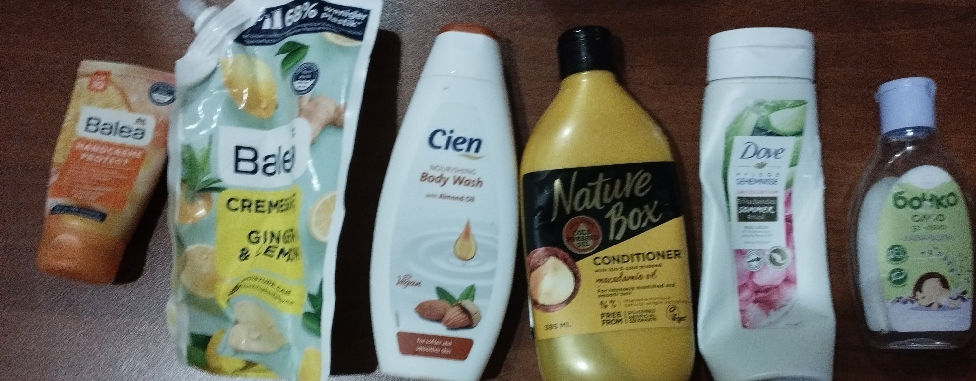Балсам за къдрава коса Nature box -по погрешка съм купила два, единият е неотворен. Този ползвах за бръснене, защото ми омръзна, а имам и други балсами. Не е лош, оформя къдриците ми.