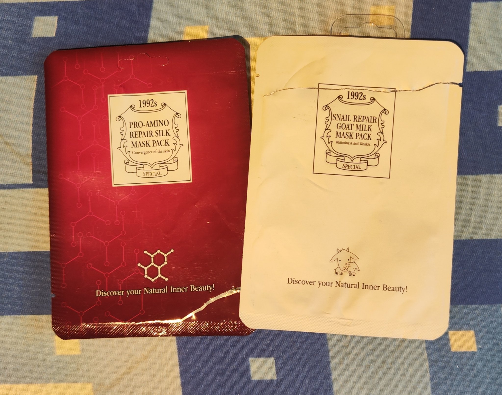 Много коментираните и хвалени маски на Митомо. Много исках и аз да се влюбя но честно казано след като ги изхабих не съм чак толкова впечатлена. Не че не са ми харесали но имам забележки (даже съм си написала върху тях) но да обобщя какво не ми допада: Ужасно трудно се разтварят, всеки път имах чувството че ще я разкъсам. Някои от използваните ми оставяха лепкаво усещане. Тази със саке буквално щеше да ме умъртви Wink. И не на последно място въобще не видях дълготраен ефект след използване, заразлика от някои доста по-бюджетни. Може би им трябва по често ползване както препоръчват от бранда. Все пак бих купила пак на много добра промоция.