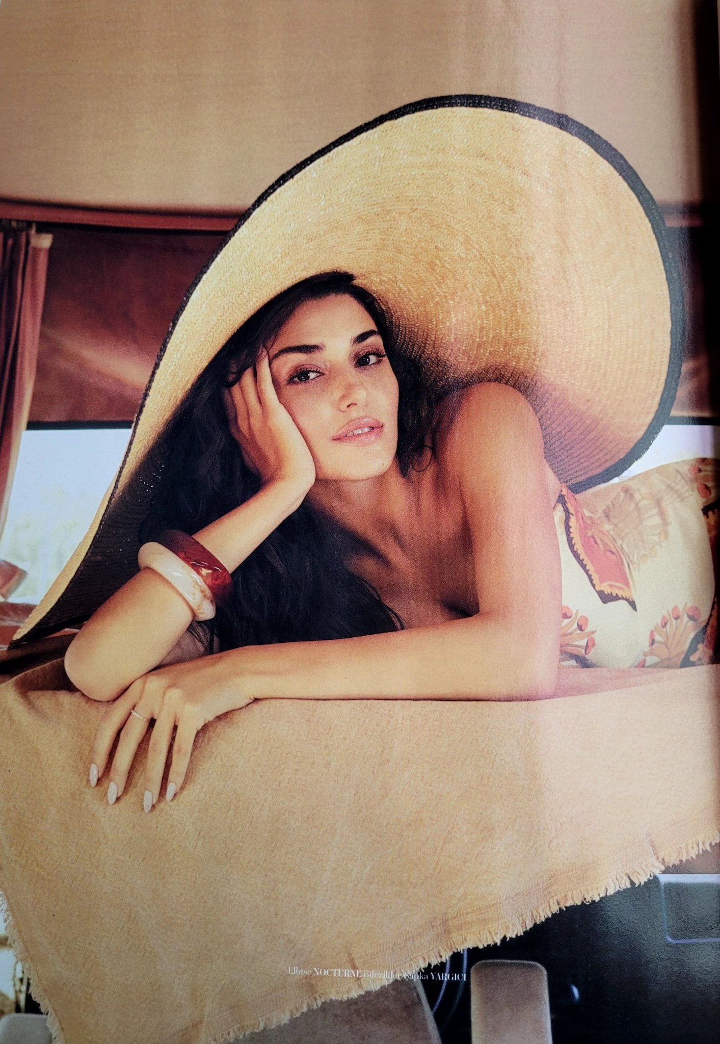 Vogue Turkiye: "Гледки подходящи както за морето, така и за парти среда, от красивия летен сезон до деня и нощта. Летен гардероб, оформен от лъскави детайли, обикновени модели, популяризирани с аксесоари, живи цветове и вечни форми. Съвременни дизайнери, които формират тъканите на мечтите сред сини води, сияещо слънце, изумрудено зелено и аромати на мускус...