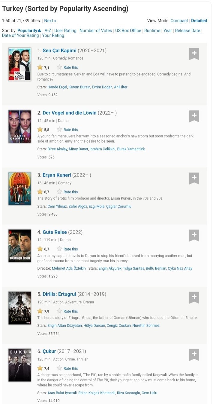 Колко пъти турските актьори са влизали в топ 5000, топ 1000 и топ 500 в световен мащаб в класацията на IMDb Starmetre.