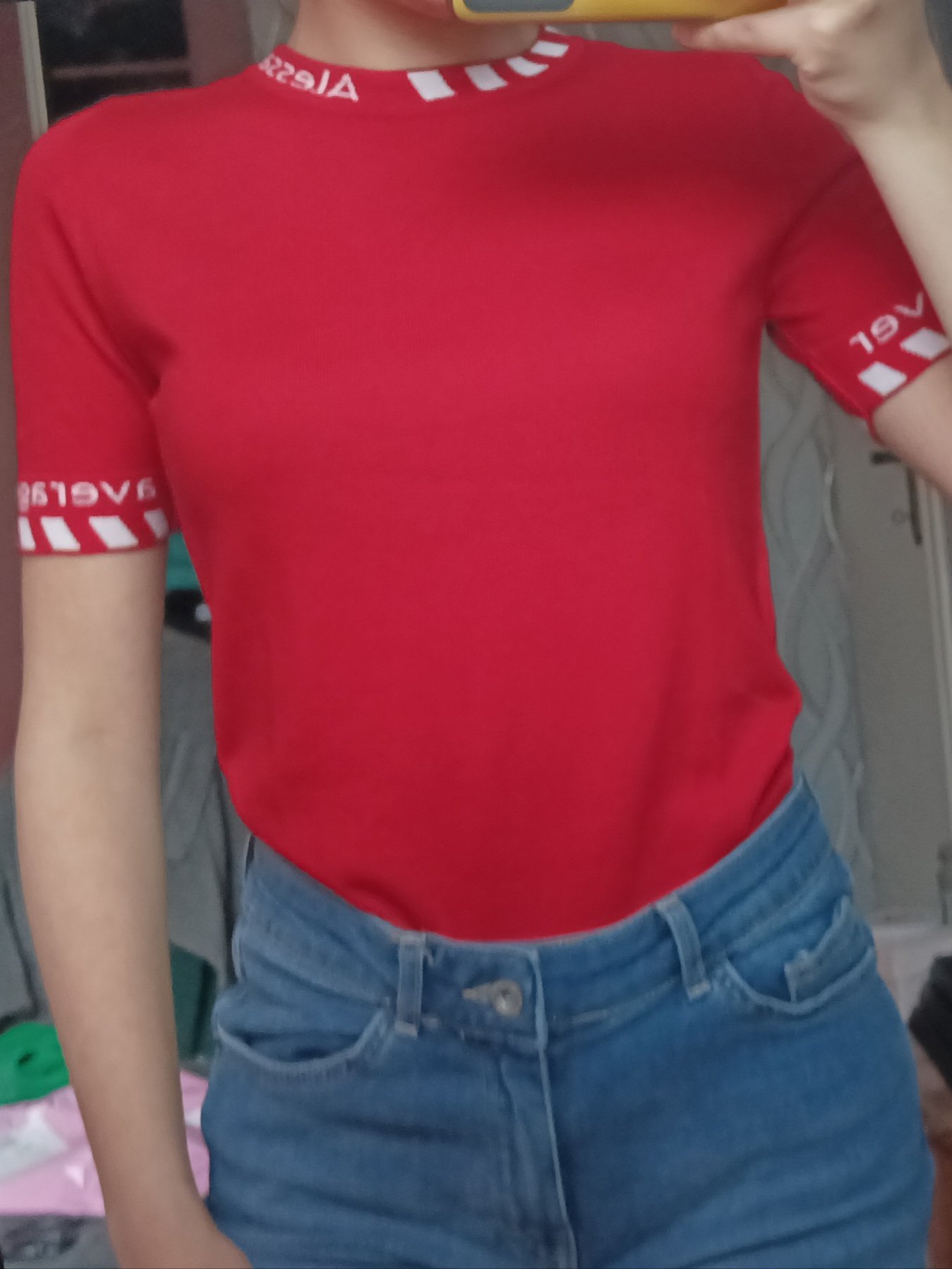 Ето я блузката, нещо снимките не искаха да ми се получат добре, цвета на живо е много по-наситен, да знаете. Но бях останала с идеята, че е червена с по-винен и студен подтон, ако има смисъл това, което казвам, хаха, а тя е по-скоро червена с леко по-топли оранжеви нотки. И с тези бели неща се чувствам малко като мартеничка. Много е мекичка и хубава, за лятото не е, за пролетта става. Може да пробвам да си взема розовата, детайлите по врата и ръкавите са по-дискретни и не са в контрастен цвят.