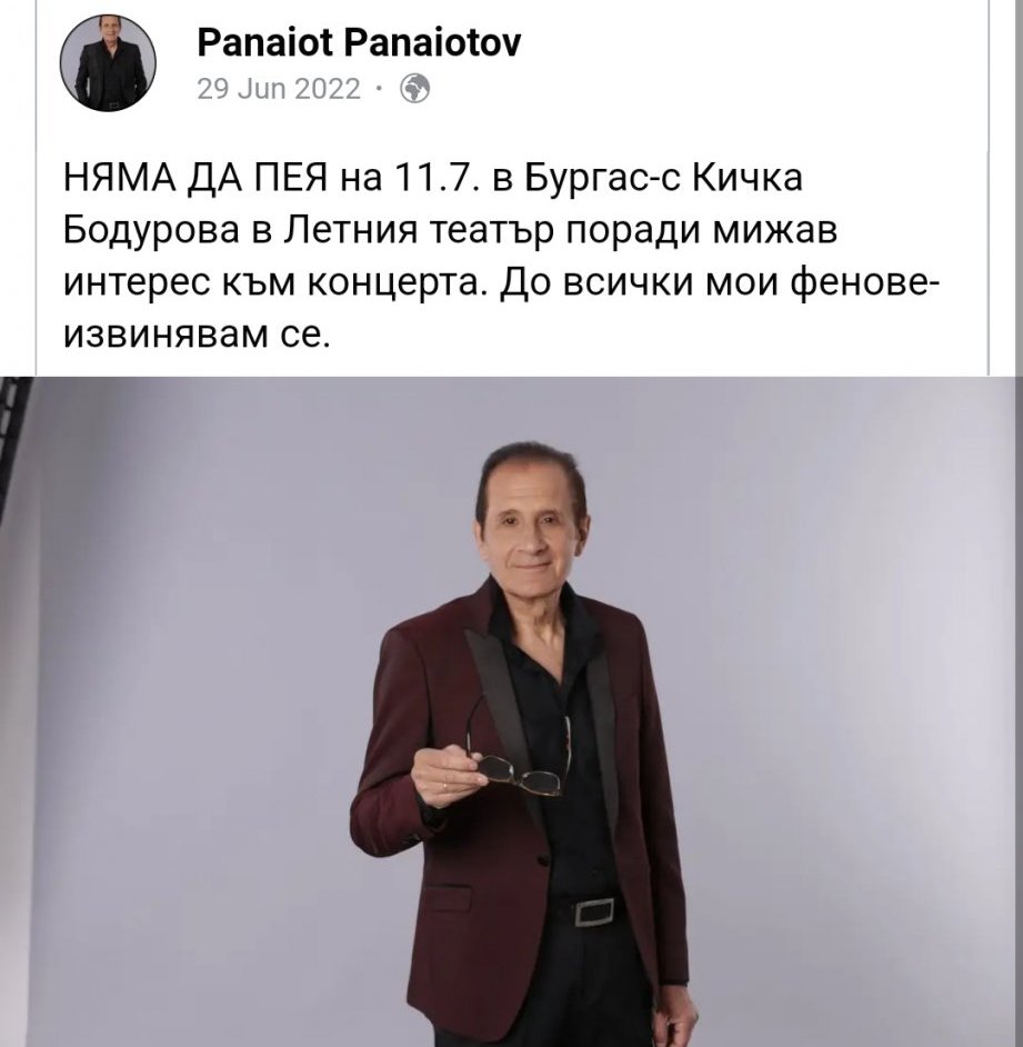 Здравейте да споделя впечатление от концерта на Руши вчера. Беше малко къс - час и 15 мин., но съм много доволна. Изпя си хитовете в нови версии и няколко по-непознати парчета. Създаде много настроение, много е забавен. Поздрави и Весела, въпреки че тя не беше там. Пошегува се, че бил станал “сапунена звезда”, закача се с момичета от публиката, танцова с тях. Има прекрасно сценично поведение. Много заредена си излязох. Днес ще има втори в София, а на 4 август е в Бургас.