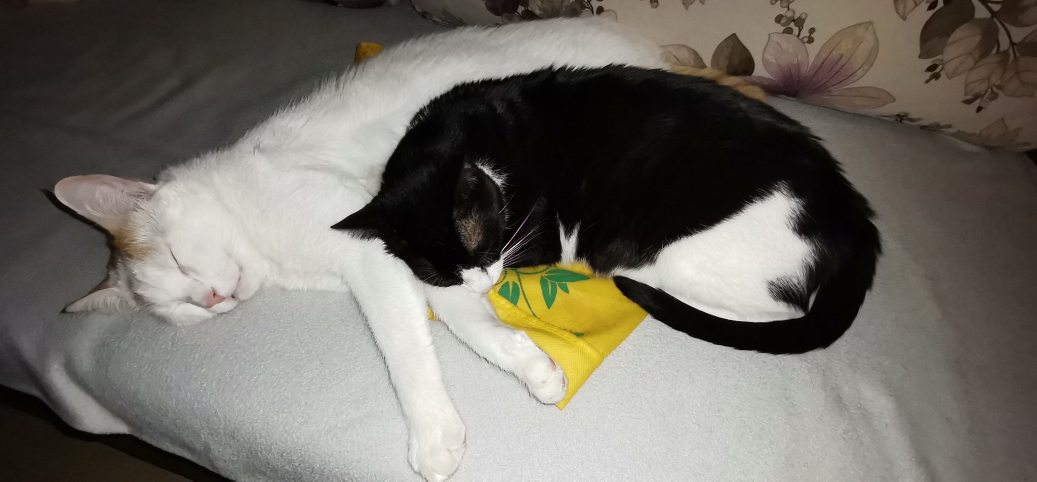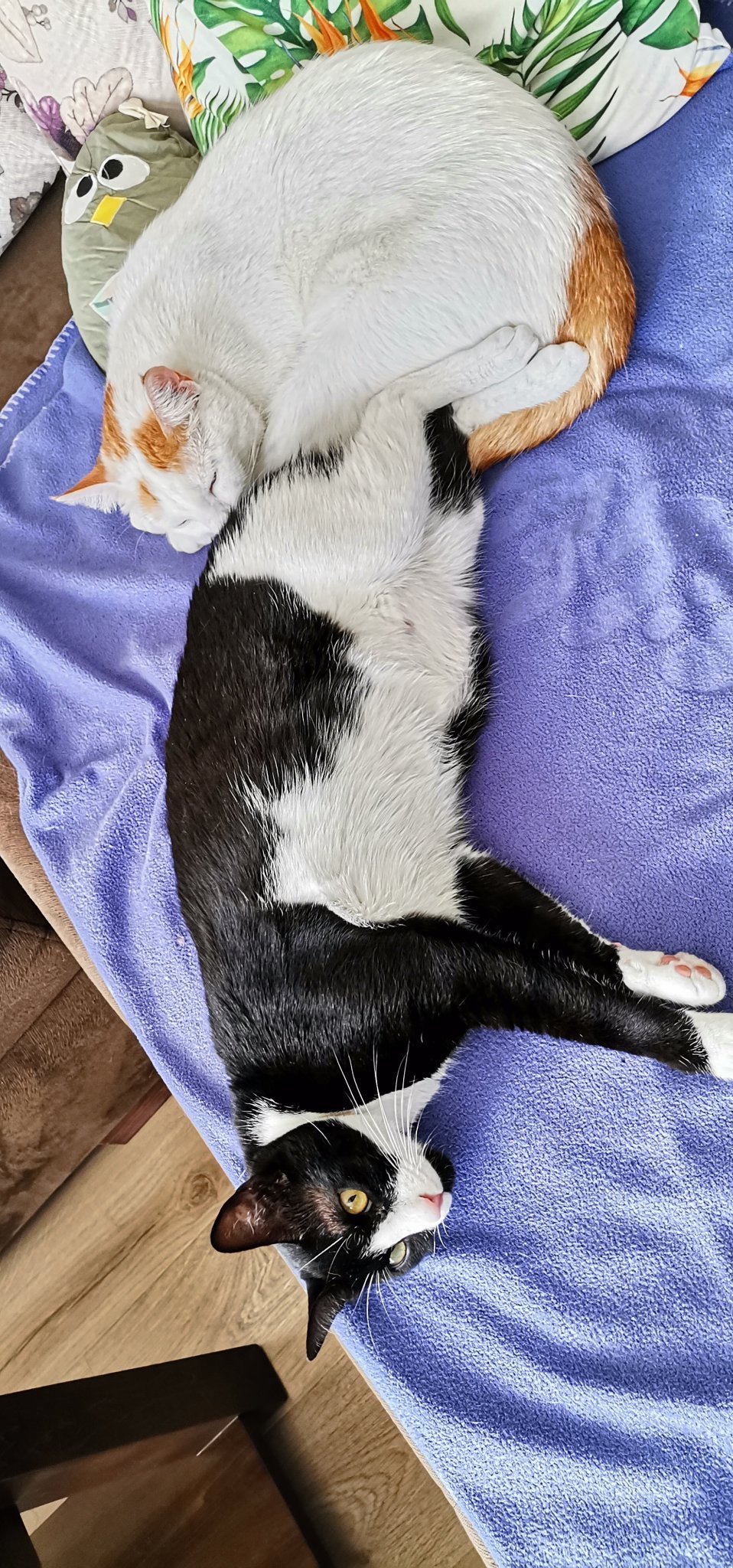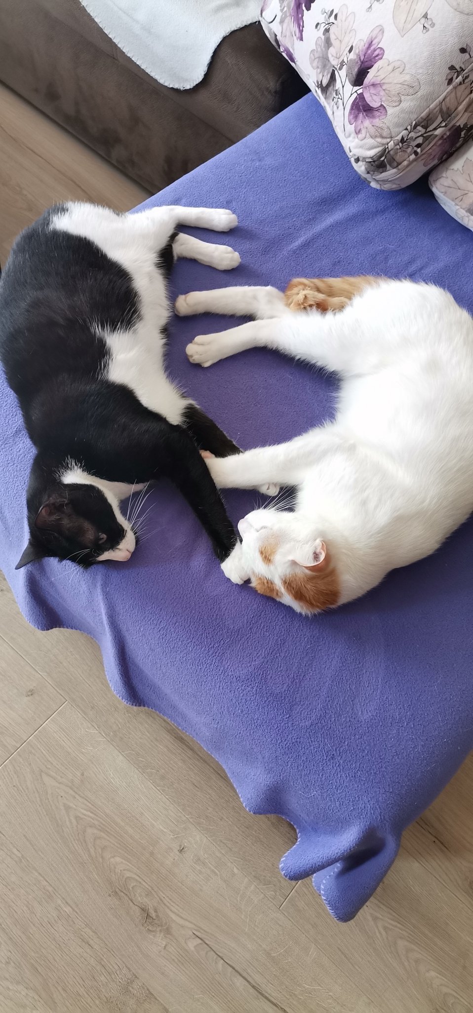 Последните дни малката котка, с която котарачето прави луди игри, беше в стационар. Двамата, които много се дразнят, доста се посближиха. Ближеха се, спяха на едно и също легло на по 50 см разстояние. Явно не е вярно притеснението ми, че не се понасят...