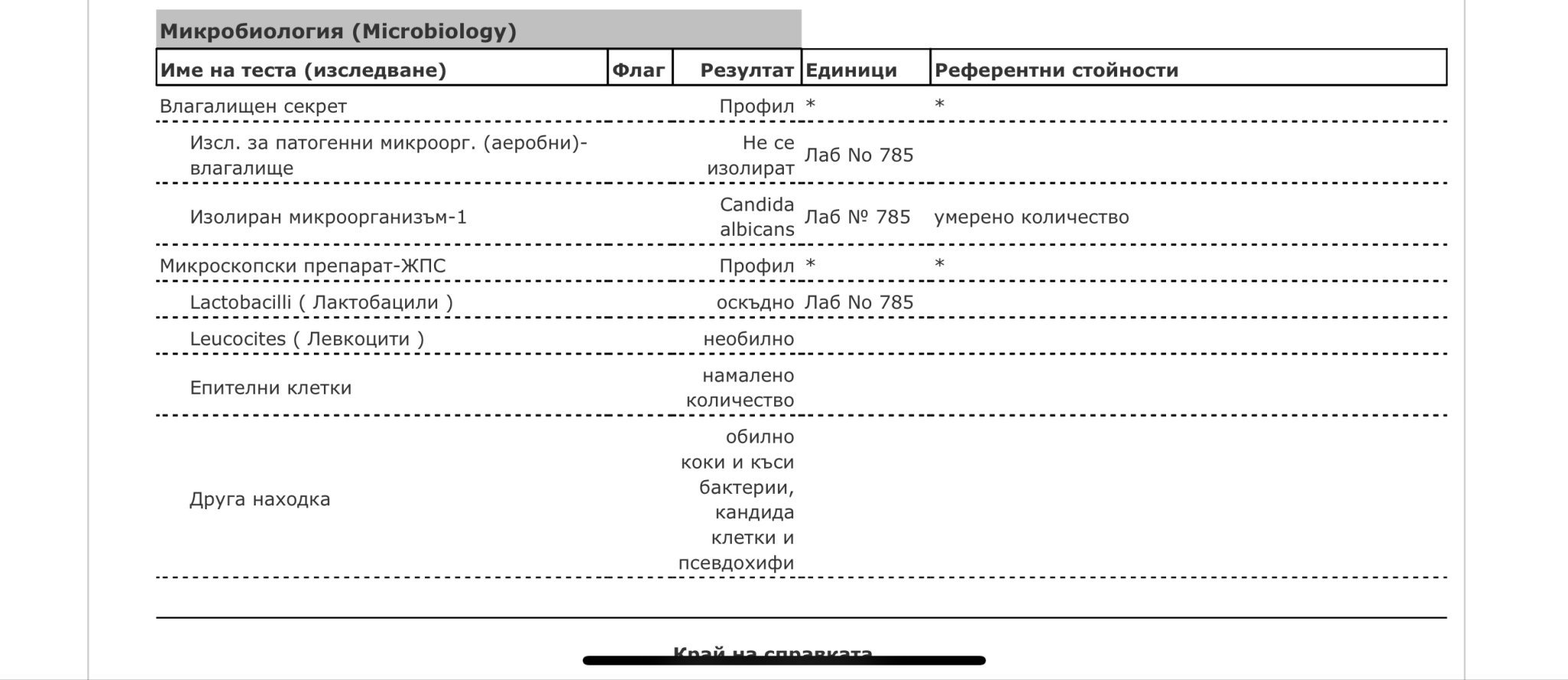 Редактирам се.. Излезе резултата. Да съм щастлива ли ? Долу в други находки пише че има коки, а горе няма бактериален растеж. Какво е това противоречие? Тоест да разбирам, че коките не са в количество извън нормата, която се обитава във влагалището. А пък кандидата е в умерени количества?.. Малко съм объркана..Какво да правя?