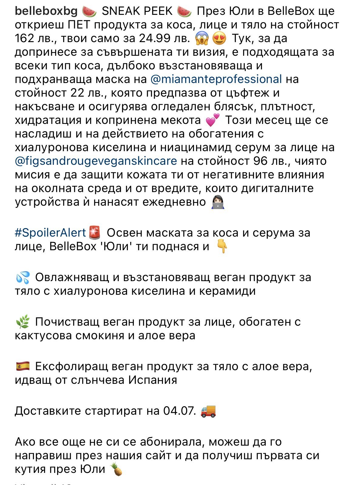 Този месец мен пък не ме впечатлява Белбокс, изчаквах да видя подсказката, преди да се откажа, ще чакам Кибрит да видим какво ще разкрият за юли…
