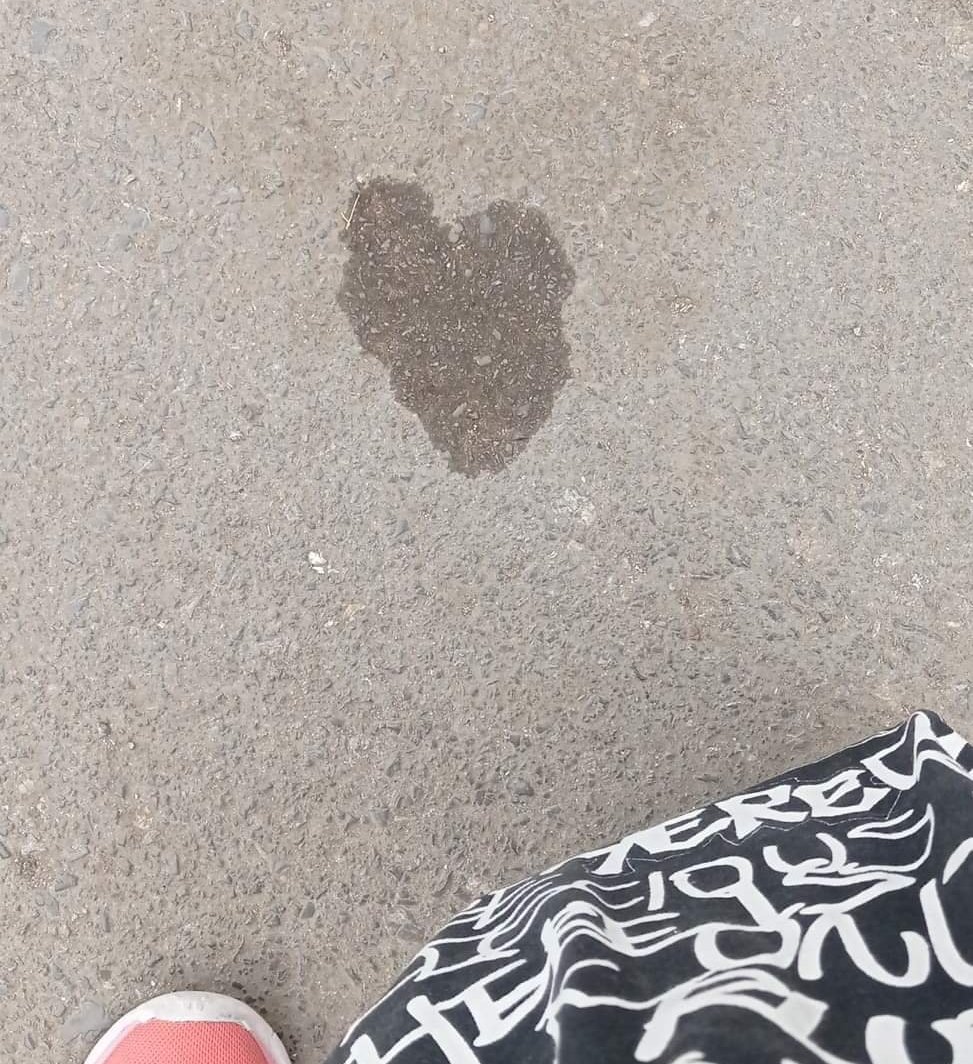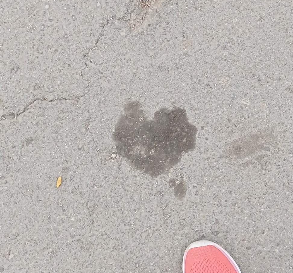 Петна на асфалта но аз ги виждам като сърца, реално всеки би могъл да ги види 😊. Радват ме, разбира се и ме усмихват.