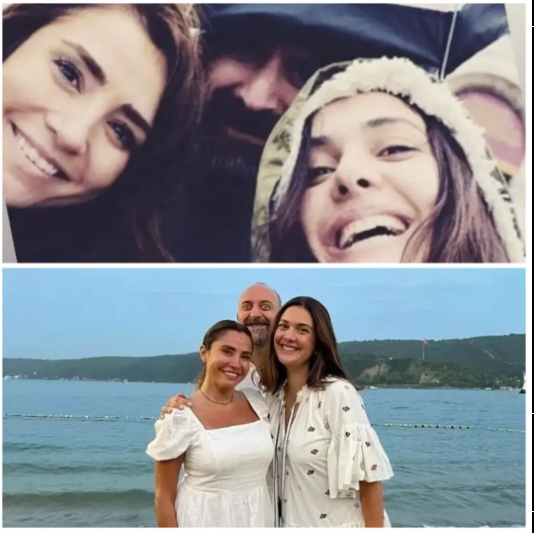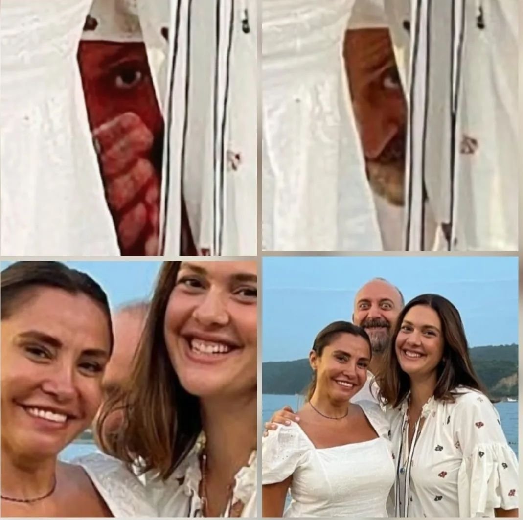 Халит е между двете, зад тях и се вижда едното му око, малко от носа и мустака Joy