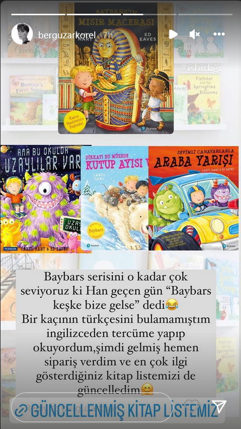 "Больше всего вас интересовала ссылка со списком книг. Мои рекомендации к прочтению книг для ваших малышей продолжатся. Это не просто список советуюмых мною книг, я делюсь с вами теми книгами, которые прочитала сама. Начинается школа. Пришло наше время возвращаться. Я заполнила свой чемодан книгами в предверии времени, когда буду смотреть на дождь у окна, закутавшись в плед и читать книги. Я заказала книги в своём любимом HepsiBurada, которые имеют особенность доставить их уже завтра. К тому же, у меня скидка 15%, что ещё нужно для счастья?🌸" /Пр.: Дарья/